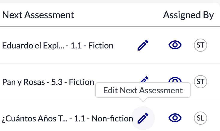 To manually select the same text for multiple students, check the boxes in front of their names, and then the "Assign Next Assessments" button in the top-right corner of your dashboard: